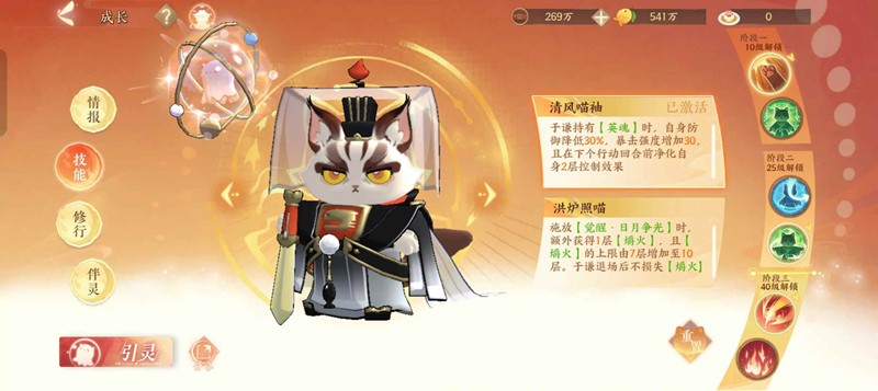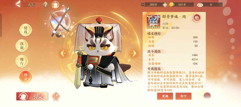 猫词条选择攻击加成最佳(高速敏猫没有伤害的),猫技能选择猫一,触发被动的时候可以提高暴强/解除控制,打出最后一波高爆发,从而达到击杀对方续航输出的目的。