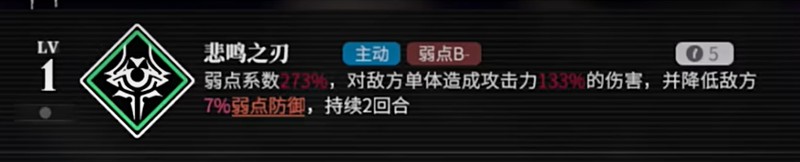 悲鸣之刃作为贝卡丝的第一技能,主要作用是进行单体输出。这个技能需要瞄准敌人的弱点进行攻击才能造成较高伤害,但同时也能降低敌方7%的弱点防御,效果持续两个回合。随着战斗进行,这个技能可以逐步增强角色的输出能力,为队友提供有力的支援。