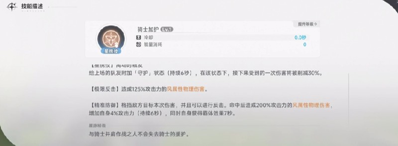 莉莉的骑士加护属于星携技能,在离场时自动触发。该技能会为接下来上场的队友附加持续6秒的守护效果,期间可减免一次受到的30%伤害。若成功进行极限反击,还能造成125%的风属性物理伤害。