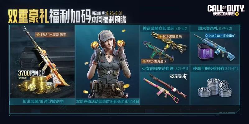 害怕错过双倍充值的战士们这次可以放心了!双倍充值活动延长至9月14日,想要收下心仪武器的战士们要把握机会哦~
