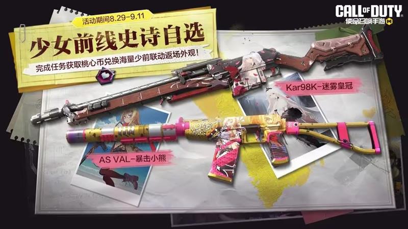 8月29日(本周五),少女前线兑换礼登场。战士们在活动期间完成任务,获得桃心币,即可兑换少女前线史诗自选箱等联动外观好礼。