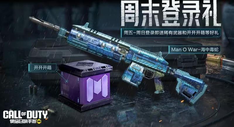 8月29日(本周五),周末登录礼活动上线,战士们登录游戏就能获得稀有级武器Man O War-海中毒蛇、开开开箱等好礼。