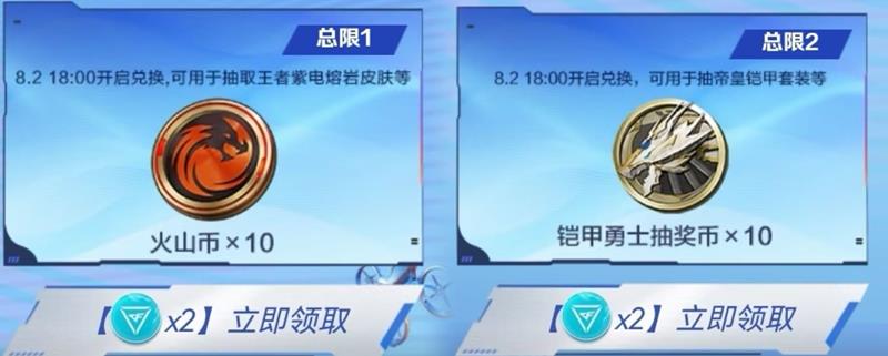 此外,我们也可以兑换火山币×10或者铠甲勇士抽奖币×10,都是近期游戏内非常火热的夺宝活动,一发十连下去,万一直接欧皇附身一发入魂呢?而且兑换价格也均为2枚高级嘉年华币,非常良心。