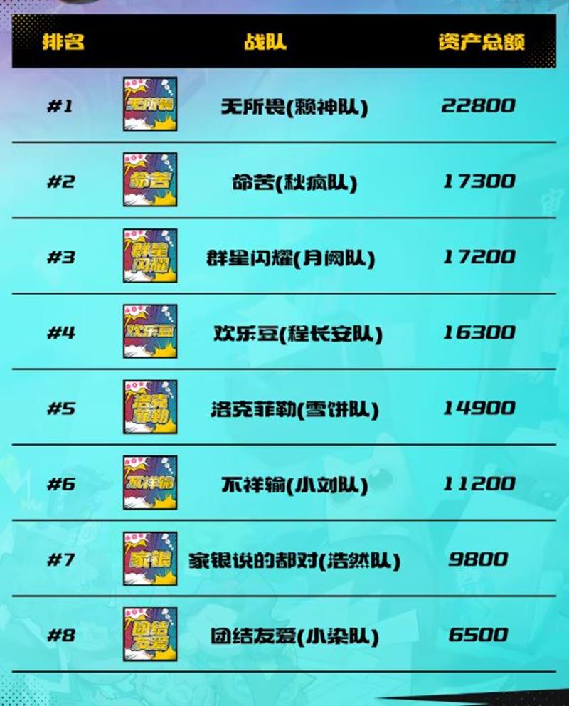 无所畏财团(赖神队):以22800的资产总额稳居财富榜一。