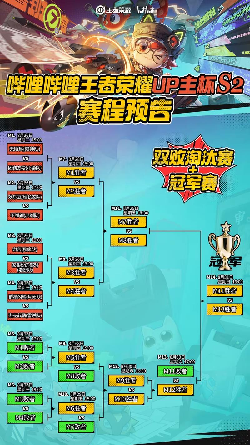 王者荣耀UP主杯S2赛事的双败淘汰赛已于8月26日15:00在B站正式打响,标志着这一赛季的高潮部分已经到来。本次双败淘汰赛将持续至8月30日,最终的决赛日定于8月31日,届时将决出财团大亨的终极霸主。