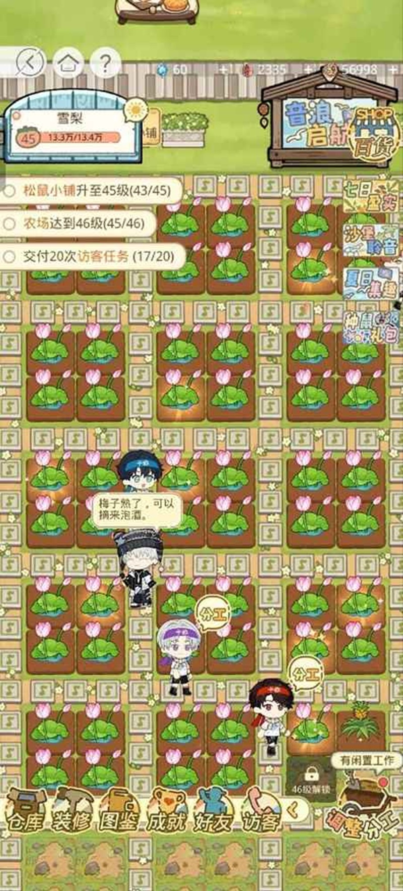 3. 音浪游戏肝完了,但我发现自己肝快了。因为大于2小时的作物不如直接仓库卖给得多。所以正确的方法是:每天用10次刷新,只提交2小时以内的作物,慢慢狗到活动快结束!