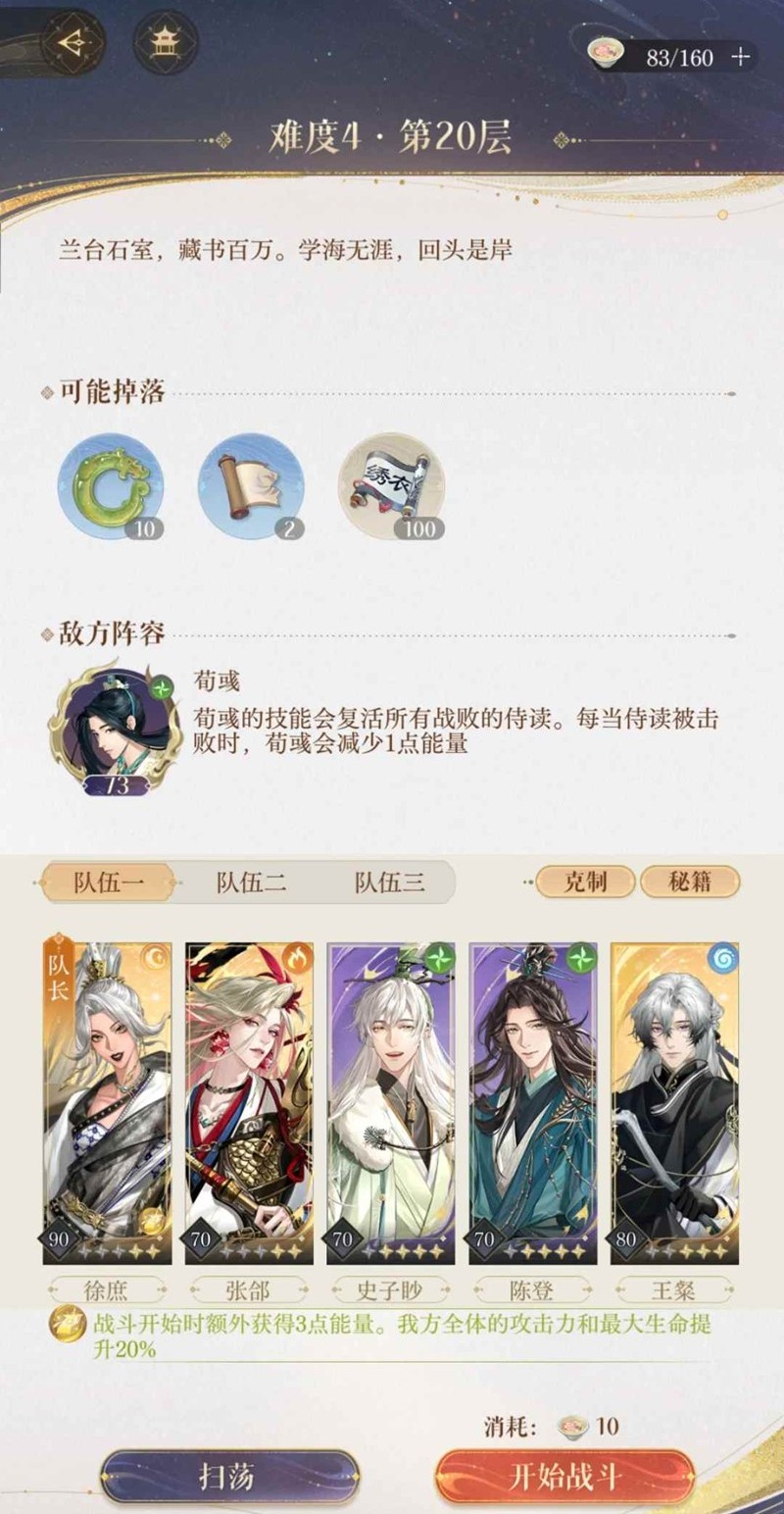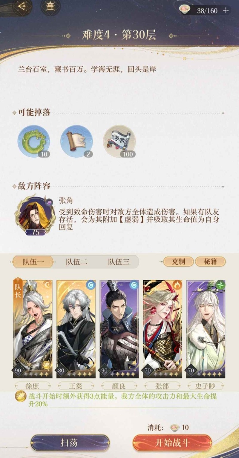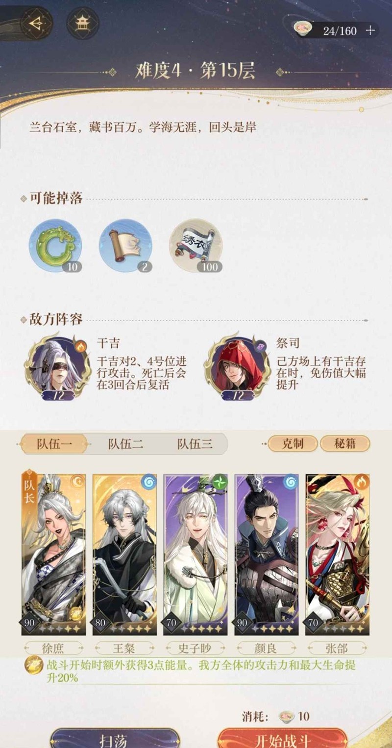 如鸢游戏中,玩家是女扮男装的“广陵王”,作为密探组织“绣衣楼”的首领,在推进主线剧情的过程中与文曲尉、太仆、孙氏少主等主角产生不同的情感羁绊。那么游戏中三期兰台4-15及其他层怎么打呢?小编为你准备了一份攻略,一起来看看吧~