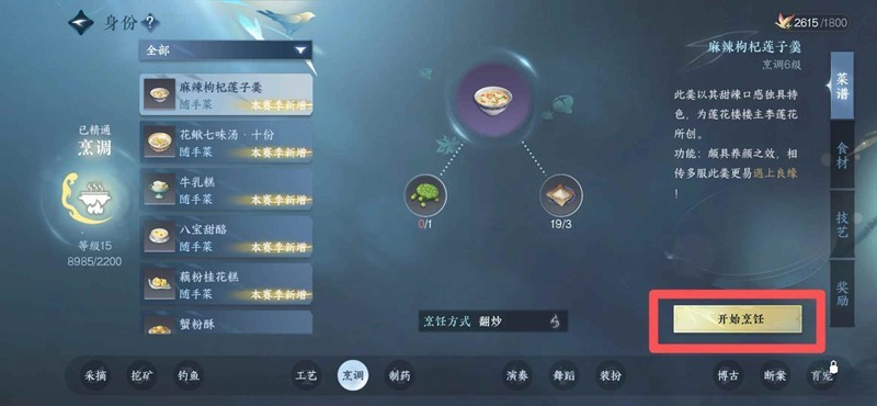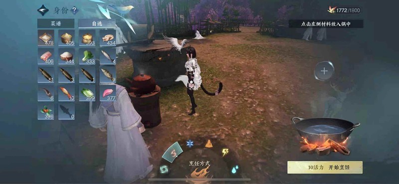 烹调自选做菜10体力的设定也是非常不错的。是古道西风最具性价比的点数收集来源。可以自己选择是抛弃高收益选择轻松一键做菜还是辛苦一点手动做菜获取高收益。
