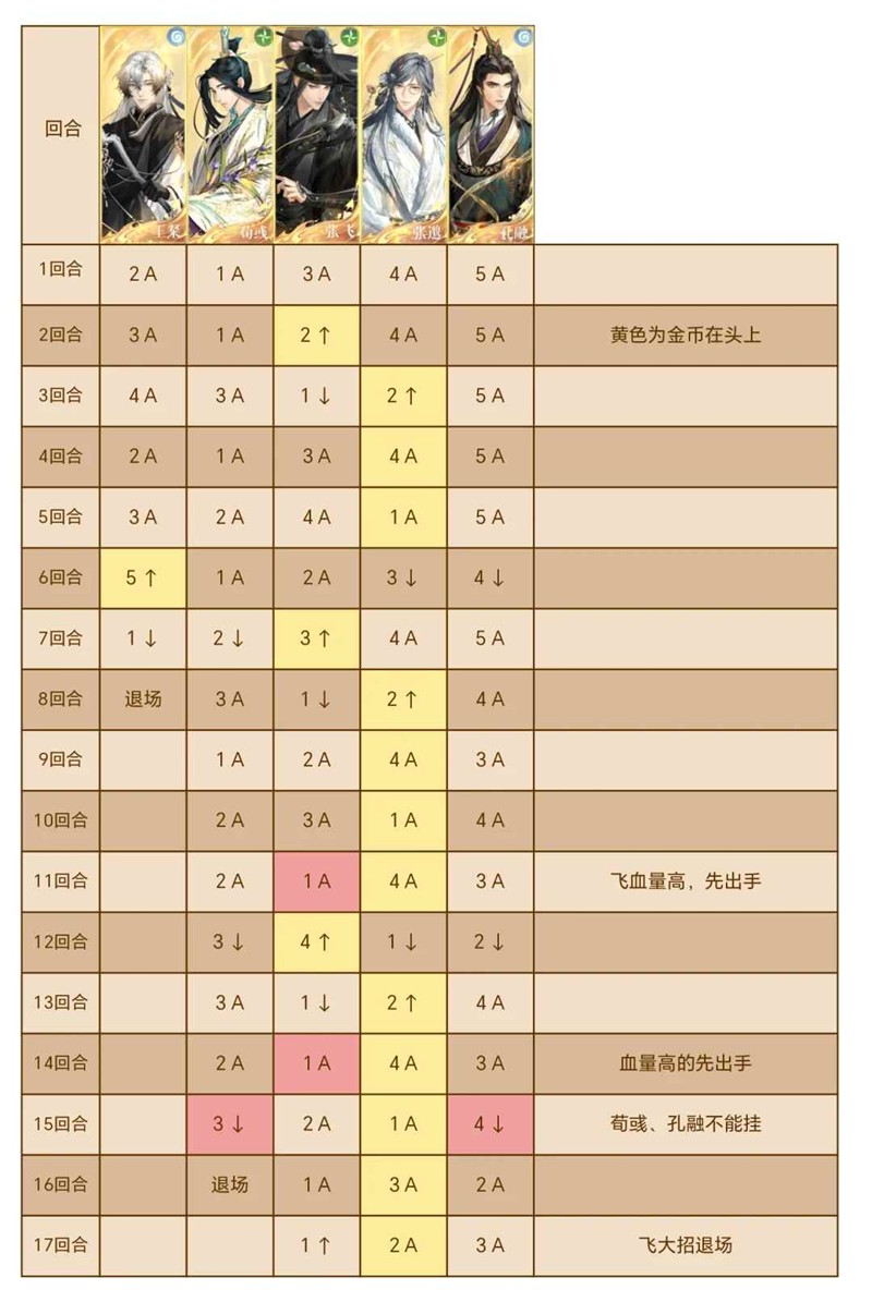 鲁肃大招技能,轮流清空135和24号位密探头上的金币,第3、9、15回合清空135号位头上金币,第6、12回合清空24号位头上金币。