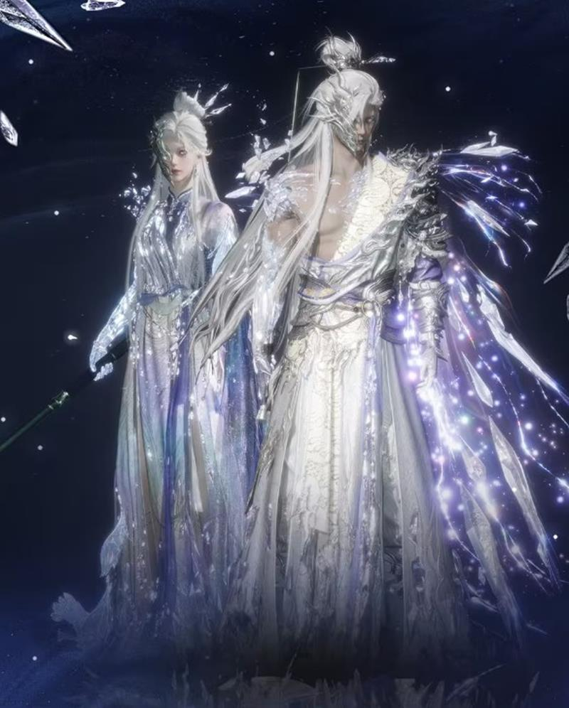 随着秦川地图的开放,游戏内还上架了全新的外观——碎霜天。碎霜天以其独特的设计和精美的工艺,成为了本次更新的一大亮点。外观整体以冷色调为主,白色和蓝色的搭配给人一种清新脱俗的感觉。服装上采用了大量的刺绣和珠片装饰,细节之处尽显精致与奢华。尤其是肩部和袖口的设计,独特的剪裁和造型让整个人看起来更加挺拔有型,仿佛是从古代画卷中走出的侠客。
