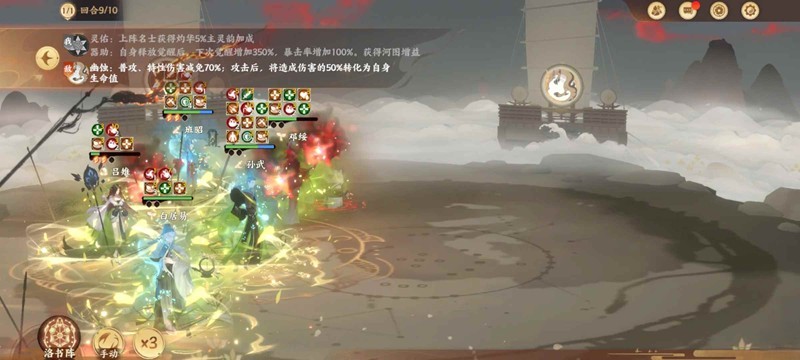 邓绥特性优先给陶渊明,不然无法选中打不出伤害,p2不开大给BOSS特性,保证场上有三个圭瓒,然后轮流叠负面,任意流漪满20就给剩下俩没圭瓒的补邓绥特性继续叠流漪,叠高了才有伤害。