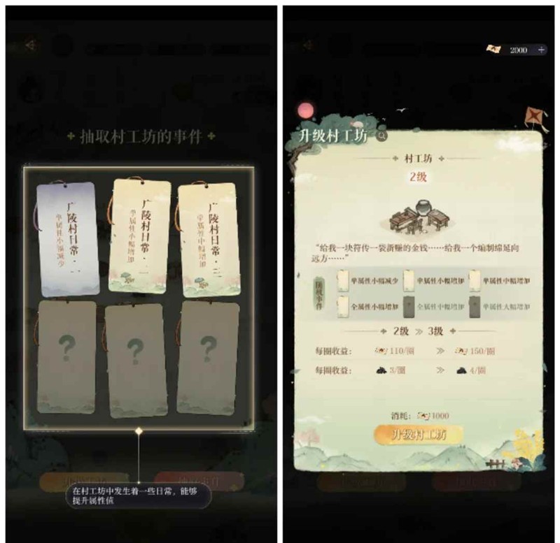 ②1.工坊提升初次需要500(含属性提升),第二次需要1000(但是不含属性提升),第三次过后才会有属性提升。2.因此最好还是平均提一下等级,这样在工坊中抽到debuff的可能性从1/3变成1/4。3.开局前1-3圈这样吧不要提太多,记得留个1000在手里,免得杨修拉你强制db,或者遇到别的需要扣钱的。4.另外,被破坏了重建需要600。(考核不通过或者在随机事件地点ddebuff