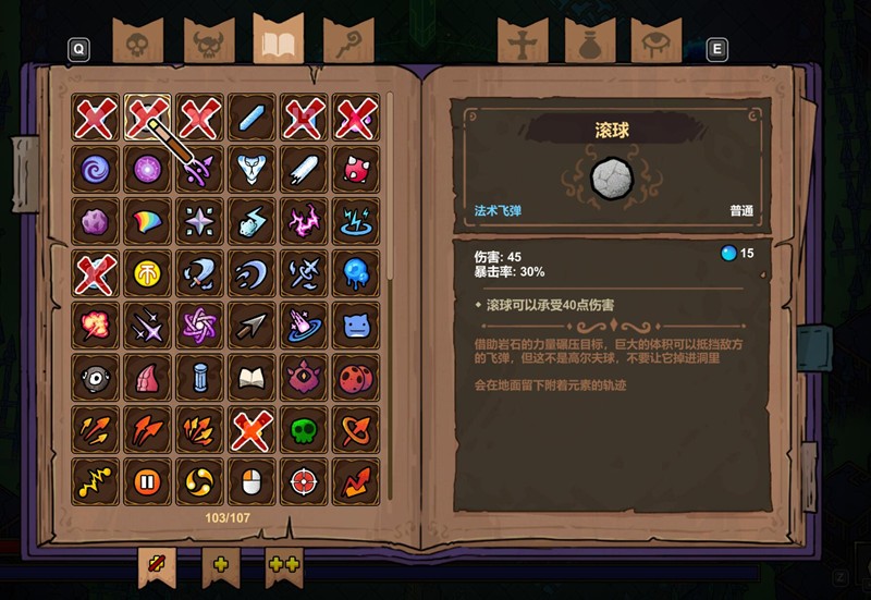 主动攻击型法术是游戏中最基础也是最重要的输出手段。魔法弹作为最基础的法术,消耗低但伤害稳定,是新手开局的可靠选择。滚石则兼具攻防一体特性,不仅能造成伤害还能阻挡敌方弹幕。黑洞拥有强大的范围吸附能力,配合持续伤害效果可以形成绝佳的控制区域。落雷阵通过连锁传导实现大范围AOE清场,是后期清图的神器。
