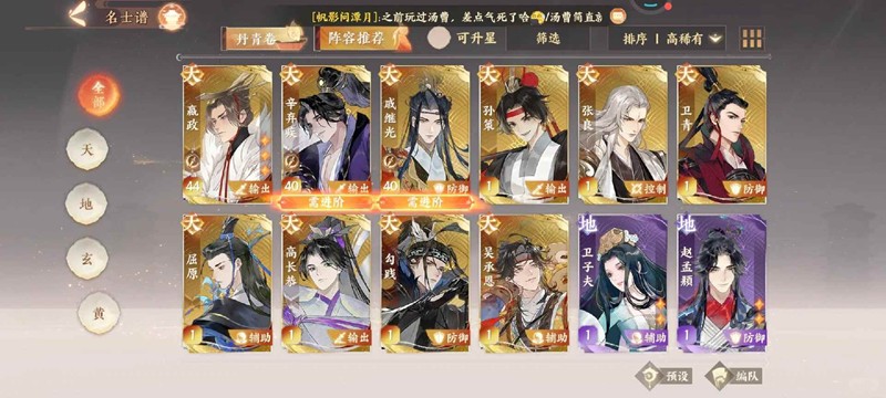 我新区开荒试图玩这个队,但是四十几级也没抽到班昭。现在拿的吴承恩蒲松龄 李世民李秀宁 吕雉,全是流血但是没班昭_(:з」∠)_