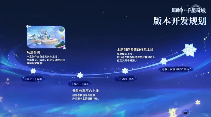 据此前报道,《原神》的UGC玩法已经初具雏形。与之前的“尘歌壶”和“神工天巧”相比,“千星奇域”提供了自由度更高的编辑器,几乎所有构成“游戏”的核心元素都可以由玩家定义。本月初,《原神》还开启了PC端UGC编辑器创作测试招募,进一步推动了UGC玩法的发展。