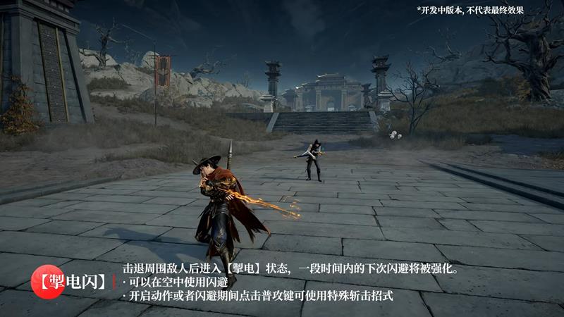 击退四周的敌人后进入【掣电】状态,接下来的一次闪避会得到增强效果,提升反应速度和防御能力。在执行动作或闪避时,按下普通攻击键,可施展强力的特殊斩击招式,造成额外伤害。该技能在受到攻击时仍可触发。