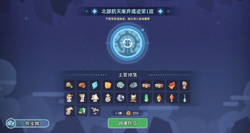 在探索北部航天废弃遗迹之前,玩家需要确保自身等级达到60级,并且体力值满100。如果体力不足,可以携带增加体力的武器或食物进入。遗迹共有十一层,每一层都有可能掉落家具或超稀有制作材料。只要玩家在探索过程中不死亡,就可以反复进入该区域进行挖掘。