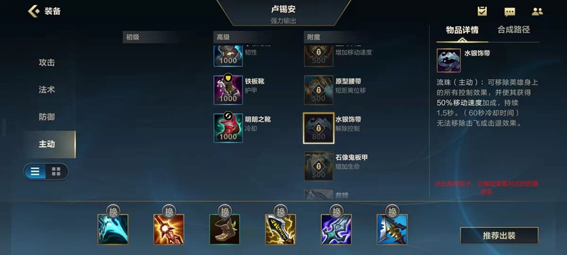 水银是游戏中非常实用的解控装备,玩家可以通过附魔获得。使用后可以解除大部分控制效果,同时获得短暂的移动速度加成,帮助快速脱离战场。需要注意的是,水银只有在被控制后才能触发完整效果,否则仅提供加速。除了脆皮英雄,部分战士也可以考虑出水银,以增强生存能力。