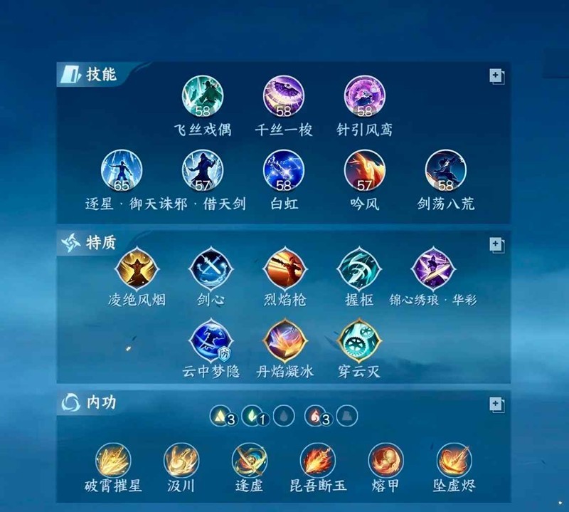 至于这个百家技能和绝技该切换什么颜色,带了点明炉就切换蓝色持续,没有带点明炉就切换图里面的紫色全技能增强就行