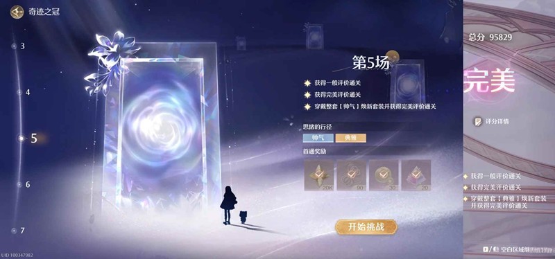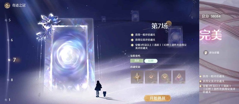 3、第七关三星要求3件及以上【清新】【幻想】,个人实测最低完美线98084。