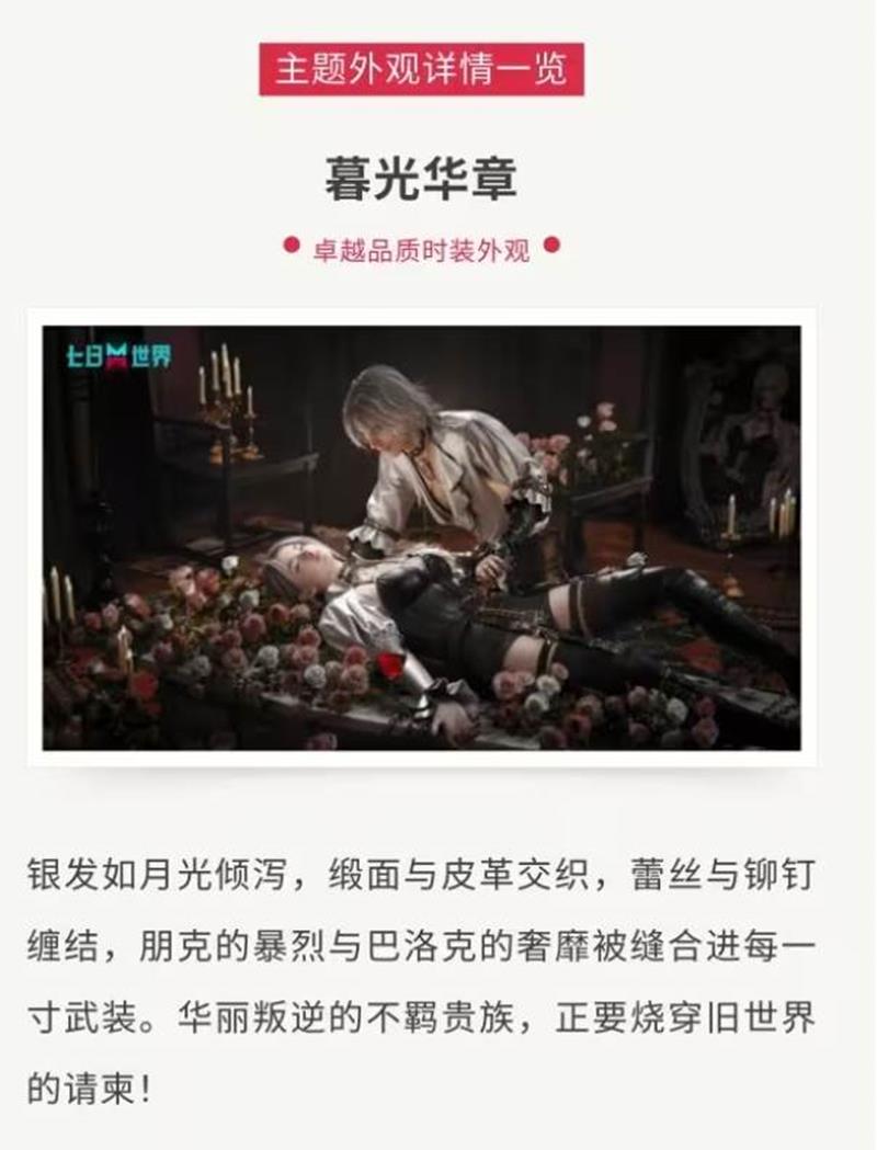 七日世界即将推出全新时装外观“暮光破晓”系列,该系列将于9月4日至10月9日限时上架。本次上新包含11款精品主题外观和道具,为玩家带来一场视觉与风格的盛宴。