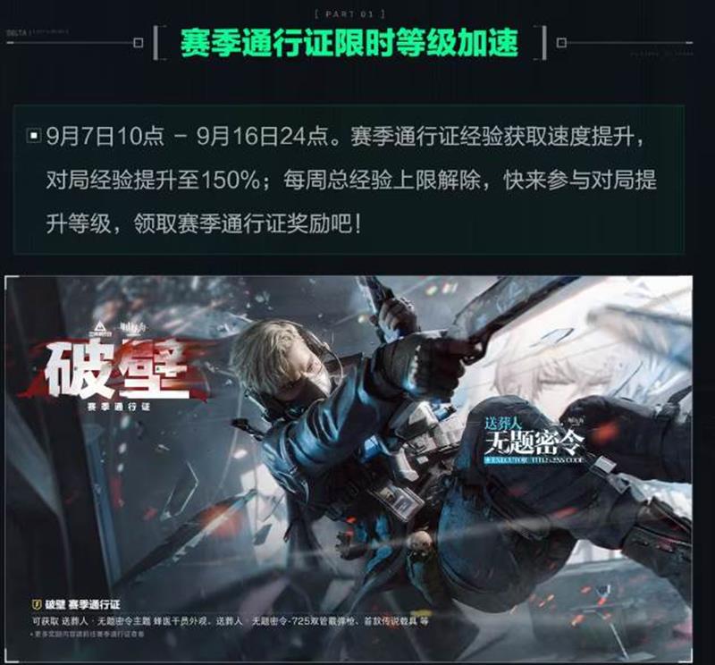 活动内容:赛季通行证经验获取速度提升,对局经验提升至150%,每周总经验上限解除,助你快速提升等级,领取赛季通行证奖励。