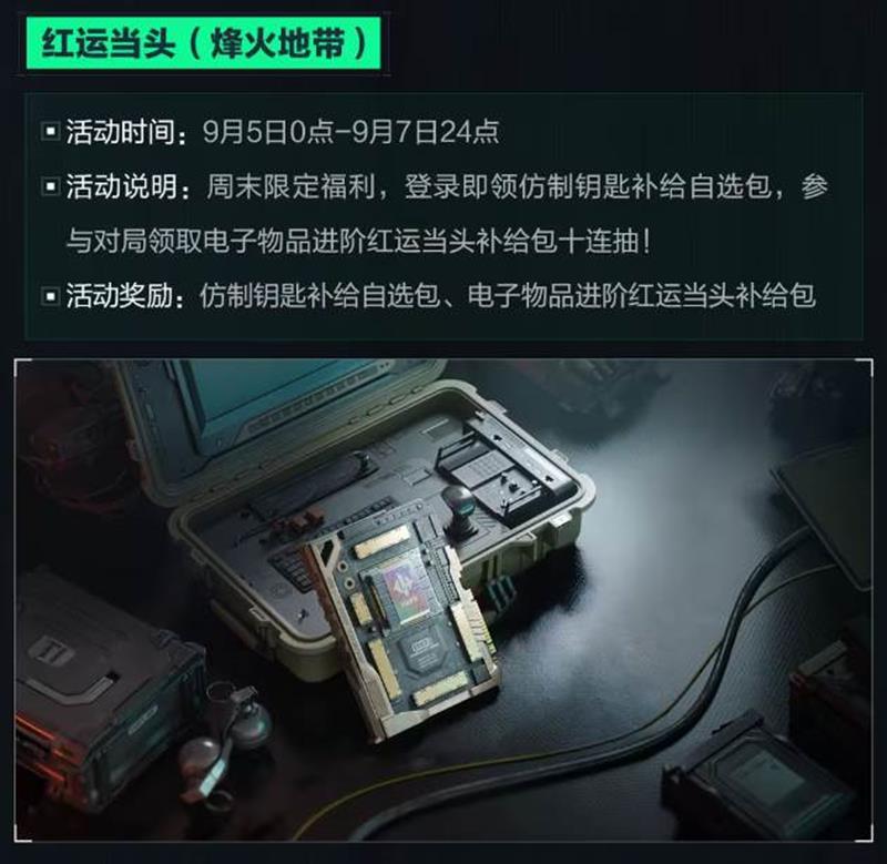活动奖励:仿制钥匙补给自选包、电子物品进阶红运当头补给包。