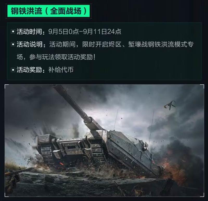 活动说明:活动期间,限时开启煜区、堑壕战钢铁洪流模式专场,参与玩法领取活动奖励。