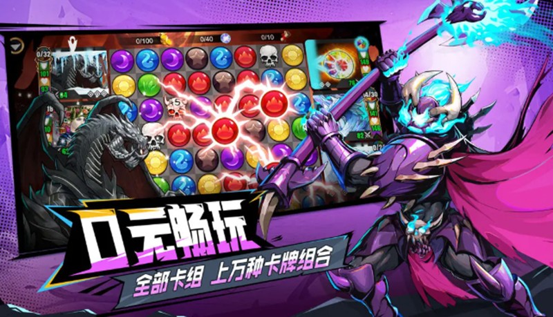 战斗中玩家与敌方轮流进行回合操作,玩家每回合可通过消除宝石获取法力值、触发骷髅攻击或达成特殊消除组合获得额外回合。在自己的回合内,玩家需要根据战场情况选择合适的时机释放角色技能。例如,在敌方准备释放群体攻击时提前使用控制技能打断,或在己方生命值较低时及时使用治疗技能维持生存。