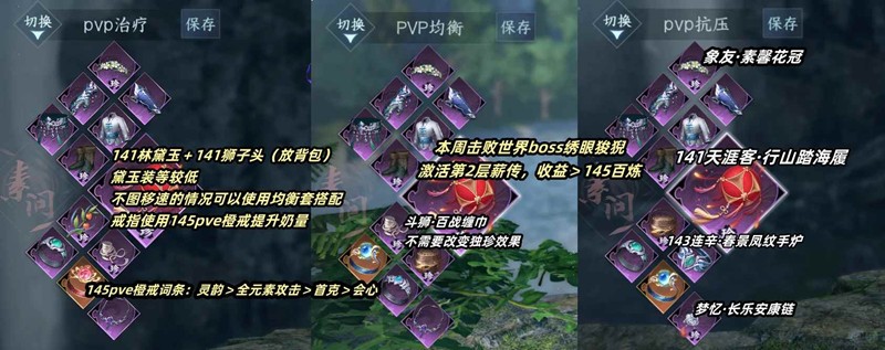 输出人伤套基本不带技巧克制,可以带斗狮·百战缠巾应对个别用技巧克制的输出职业。也可以替换为气盾独珍项链(既为抗压套),橙戒替换为145pve橙戒提升奶量。