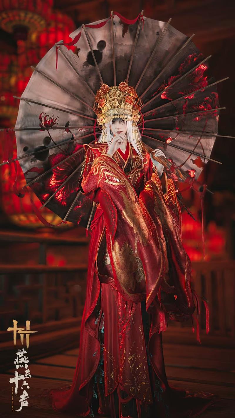 墨染伞面似暗夜冥渊,冷意彻骨;血色花纹如忘川业火,妖冶夺目。锈色伞骨刺穿残破伞面,红线缠绕其上宛若执念难断。持握时,往昔悲喜俱涌,又如尘烟散入空中。