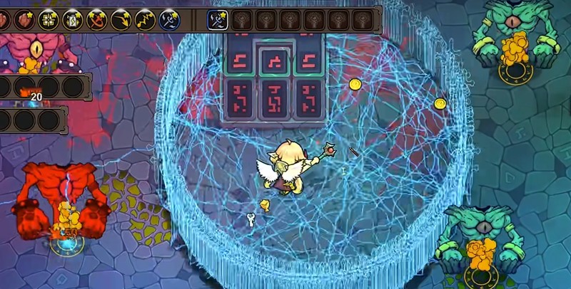 有三个关键方向:范围增强(扩大作用半径)、悬停(延长持续时间)和时长强化(进一步增加存在时间)。数据显示,一个完全强化的破魔剑+可达到180度扇形、半径8单位、持续12秒的效果,几乎能覆盖大部分战斗场景的防御需求。破魔剑流应避免使用“分裂”强化,因为分裂出的飞弹体积会变小,不利于拦截敌方攻击。遗物搭配上,“放大镜”(扩大法术范围)和“伟业见证者”法杖是核心装备,能显著提升破魔剑的覆盖面积。“自动导航”遗物能让破魔剑在战场上均匀分布,避免防御死角。此外,“法杖透镜”提供的击退效果可阻止敌人近身,弥补破魔剑对近战敌人的弱势。
