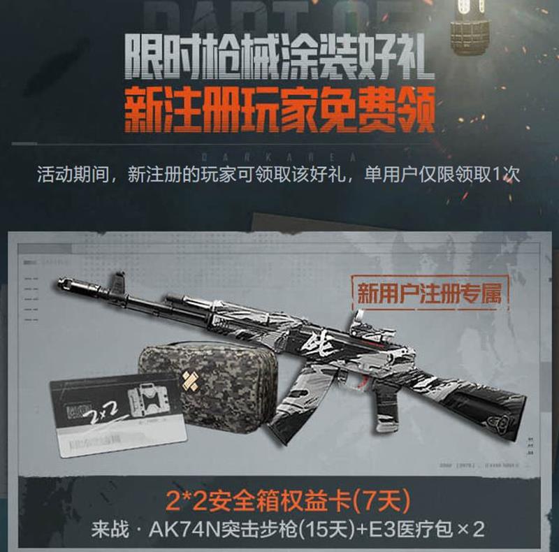 来战·AK74N突击步枪(15天)+E3医疗包×2:限时武器和补给,助你快速上手。