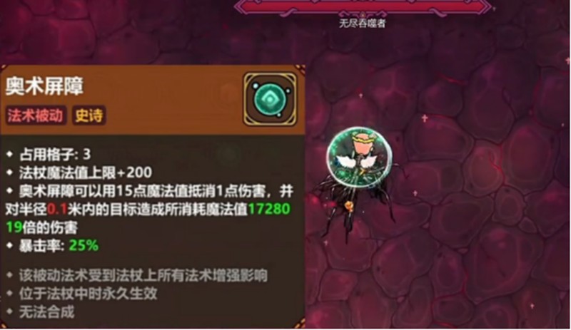 在实际战斗中,奥术屏障的使用需要结合其他技能和装备进行配合。例如,通过赤色脚环和死神赌约等道具叠加护甲和生命值,可以让玩家在面对高伤害敌人时更加从容。同时,利用魔力藤蔓流可以增强护盾效果,使奥术屏障在长时间战斗中保持稳定。此外,虚胖法术可以扩大奥术屏障的覆盖范围,帮助玩家更高效地清理战场。