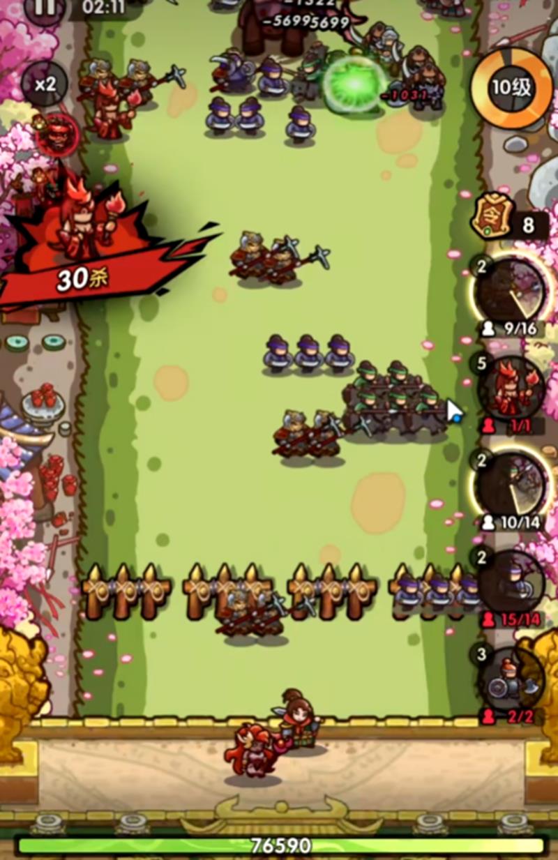 在没有合适的弓兵或火法卡牌时,可以适当选择刀盾兵作为前排单位。刀盾兵能够有效抵挡敌人的攻击,为后排输出兵种提供保护。如果玩家拥有将军令道具,建议直接快速补充弓兵数量,这样能加快弓兵的升级速度,更快形成强大的战斗力。