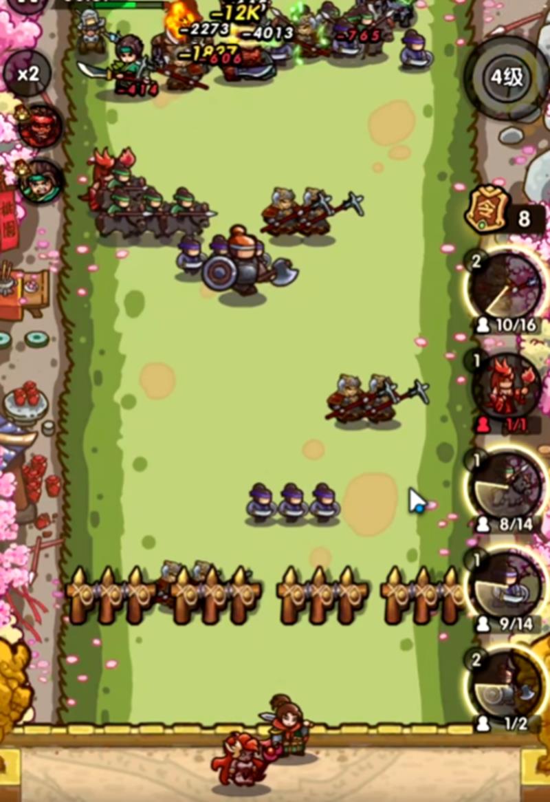 进入关卡后首先要快速铺满兵种阵容。由于前期小怪都具有火属性弱点,优先选择火法卡牌进行清场。将火法提升到5级左右时,对小怪就能造成可观的伤害效果。当火法达到5级后,就需要开始积攒弓兵卡牌,为应对最后的BOSS张角做准备。后续要尽量将弓兵的相关卡牌强化到最高等级,以提升对BOSS的输出能力。