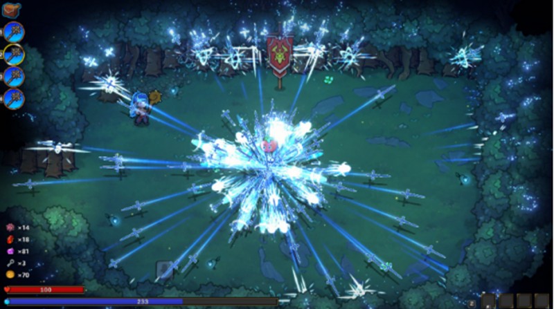 审判之剑的主要功能是召唤魔法剑,当释放后,魔法剑会在敌人周围形成一个圆圈,自动攻击附近的怪物。一旦怪物触碰到审判之剑,包围的墙壁会消失,导致怪物失去生命值。此外,魔法剑还能追踪靠近的敌人,持续造成伤害,提升战斗效率。