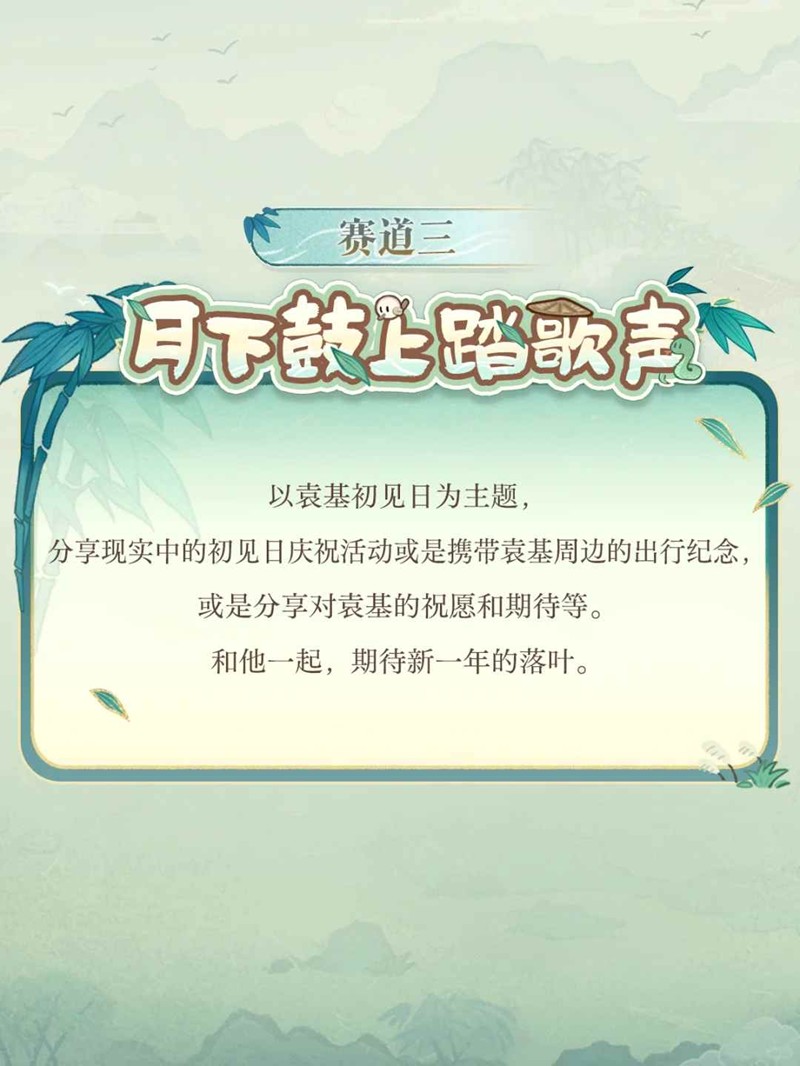 以袁基初见日为主题分享现实中的初见日庆祝活动或是携带袁基周边的出行纪念或是分享对袁基的祝愿和期待等。和他一起,期待新一年的落叶。