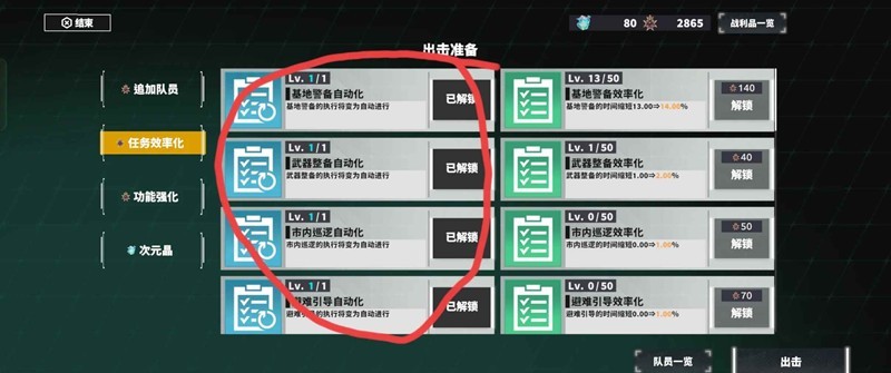 3:“任务效率变化”选项去购买前5个自动任务,这会帮你解放双手不用一直点任务,如果要攻略更高的km,建议从1到5任务,点到100以上收益会最大化,tips最重要第1,2,3,这3个任务点高一点,因为时间很短,很快拿到收益