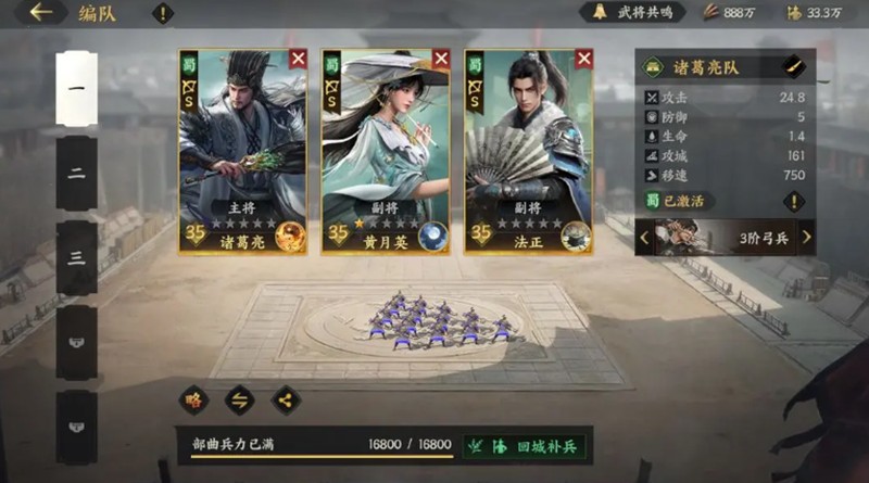弓兵体系在开荒阶段表现出色,王平、法正、糜竺这套平民三杰可通过主线或免费活动获取,上手门槛低。王平的基础攻击力成长优秀,配合法正的易伤状态,能快速削减敌方前排血量。待霸业初兴活动开启后,及时兑换徐庶能显著提升队伍上限。斗智弓组合中的诸葛亮是智力成长最高的将领,其技能伤害与敌我智力差成正比,黄月英的专属增伤效果与法正的易伤状态形成完美配合,三者联动产生的法术洪流能轻松突破防线。