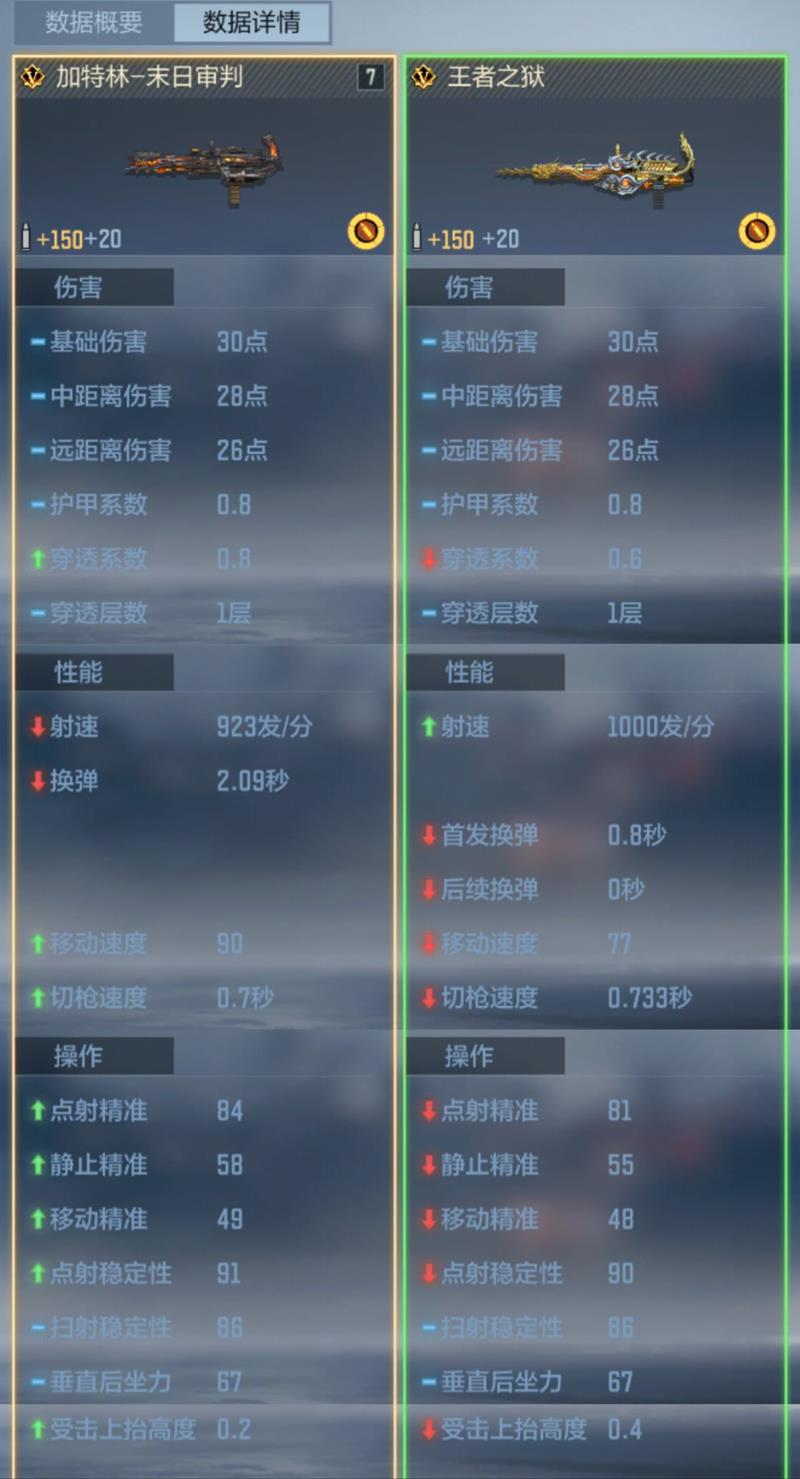 与同为加特林系列的王者之狱相比,加特林-末日审判仅射速略逊一筹,但换来了穿透与移速的大幅提升,并且弹道方面也有不小的提升,特别91点稳配合0.2受击,使其在竞技领域也能有不俗的表现,对枪丝毫不落下风。