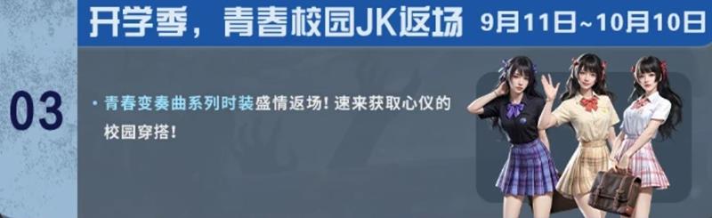 青春变奏曲系列时装盛情返场,玩家可以获取心仪的校园穿搭。