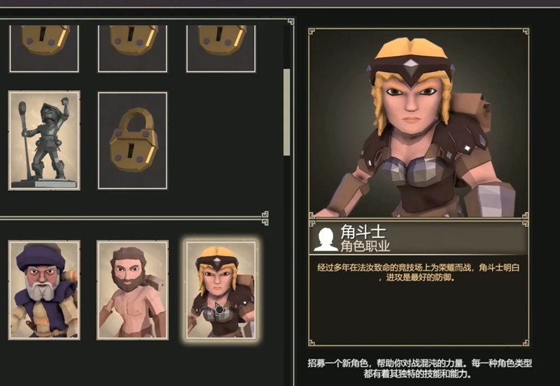 想要使用角斗士这名角色,玩家需要在失落的文明剧本中选择炎热土地(或焦干荒地),然后前往竞技场挑战对手,最终在打赢了冠军后,游戏就会自动为玩家们解锁角斗士这名角色。解锁后,玩家可以在初始角色选择中使用她来进行游戏。