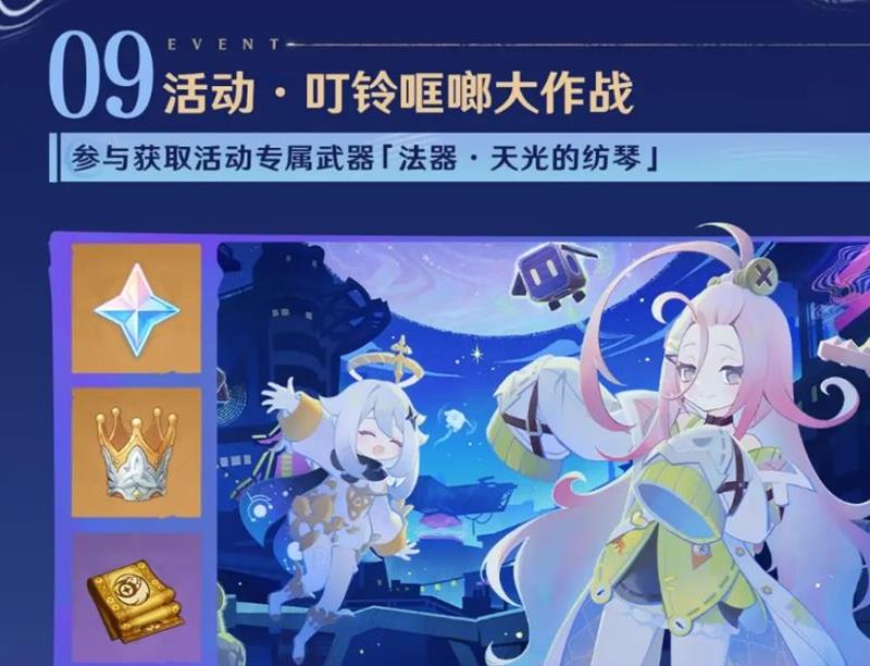 此外,登录即送1600原石+10纠缠之缘(邮件发放),自选常驻五星角色(含新角色「梦见月瑞希」)+直升60级材料。