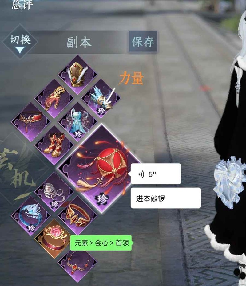 然后看装备,我特意标注了,世界武器进本敲锣,这个会心加成我一直以为是进本自动提升,其实是手动敲锣(这周世界boss记得打)