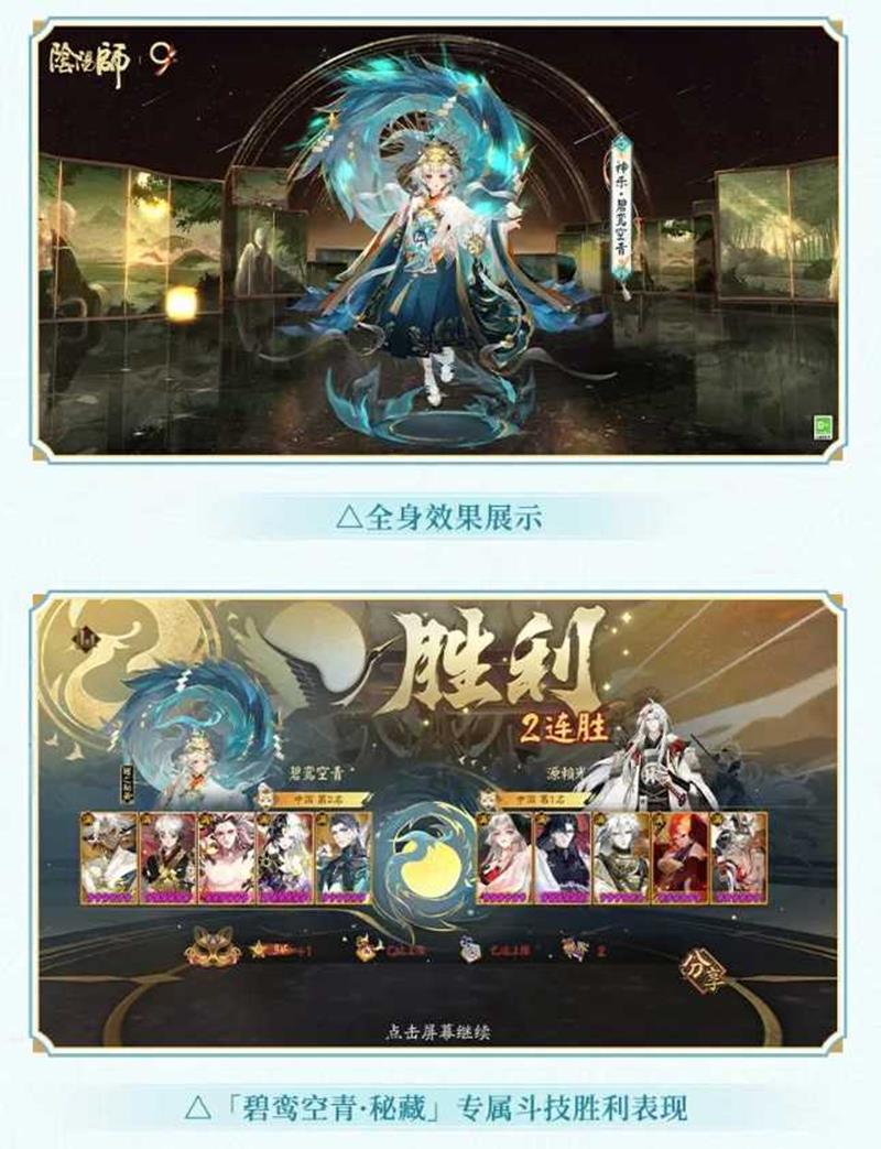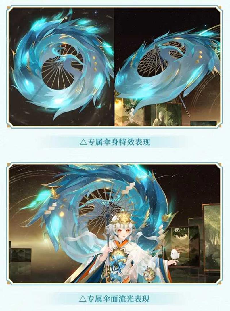 集齐奖池中的「技能特效」与「伞身特效」:即可额外获得神乐专属秘藏皮肤「碧鸾空青-秘藏」!同时解锁「碧鸾空青-秘藏」专属斗技胜利表现、专属伞身特效表现、专属伞面流光表现。