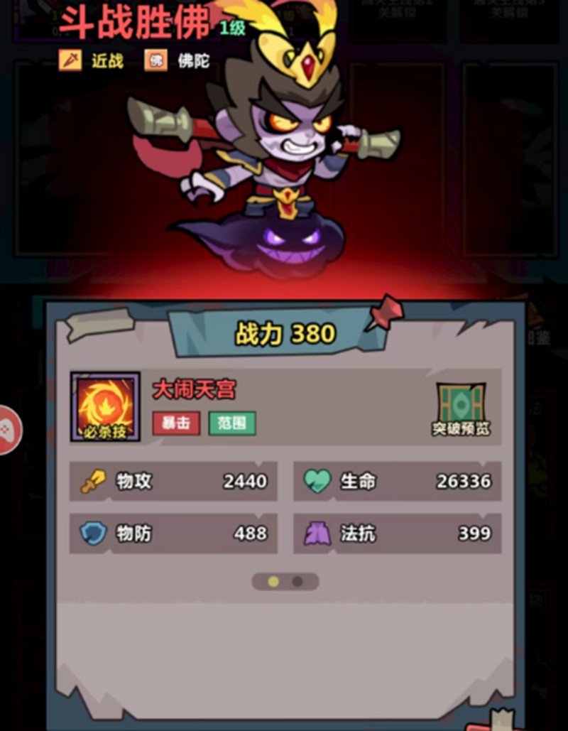 斗战胜佛孙悟空是妖怪金手指中典型的暴力输出角色,他的大闹天宫技能不仅造成高额伤害,还能让自己进入无敌状态,极大提升了生存能力。棒击大地和如意棒法的组合让他的输出更加稳定,暴击加成使其在战斗中更具威胁性,非常适合追求高爆发的玩家。