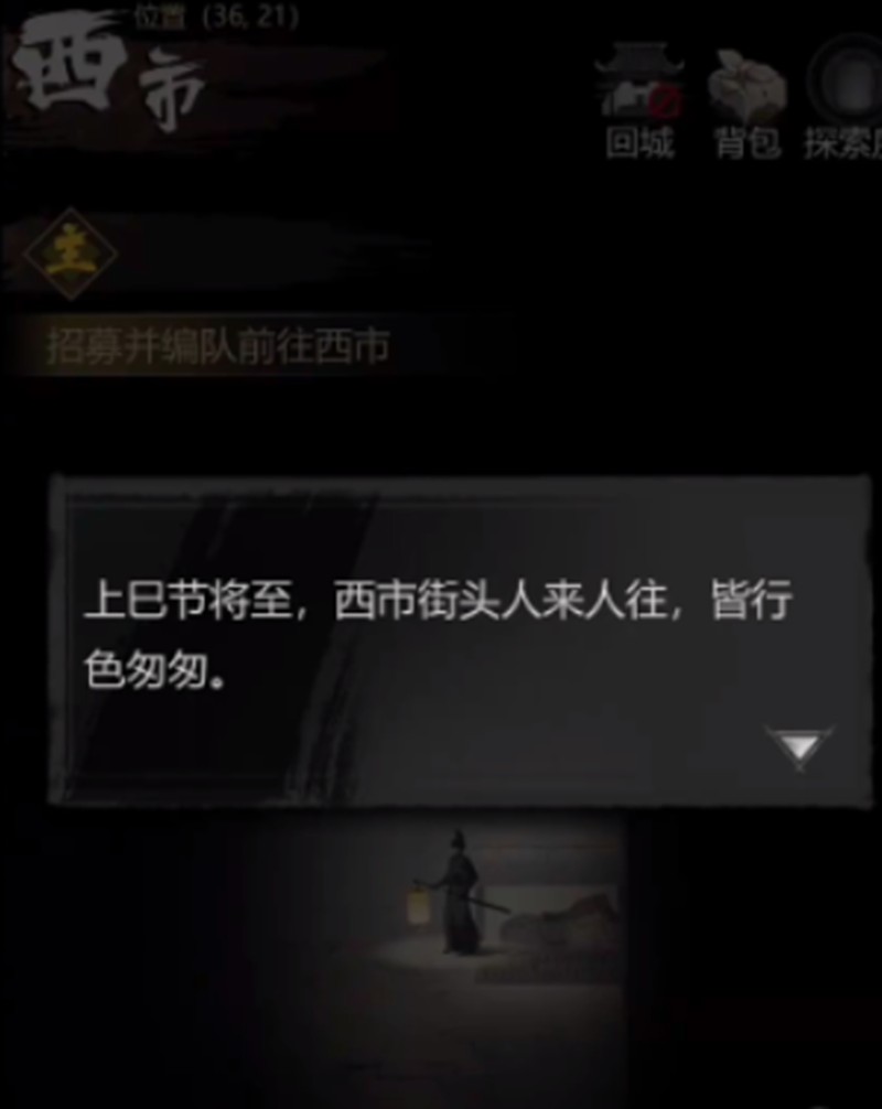 该据点位于西市的西北方向,玩家需要先完成西市暑里的全部事件。首先前往(28,18)与NPC对话,了解当前发生的案件,并购买一份胡饼。随后向地图下方移动,触发战斗事件,击败敌人后将胡饼送给对方。接着前往(33,26)询问生意状况,继续前进可获得蓝色荷包,捡起后提交给指定NPC,再返回城镇准备装备,最后抵达(32,7)进行对话即可完成据点任务。