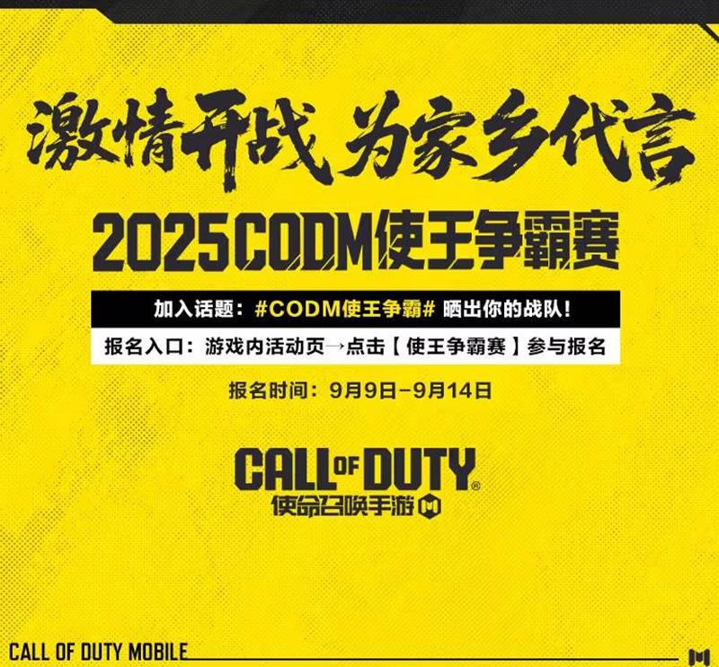 玩家可以通过游戏内活动页点击【使王争霸赛】参与报名。加入话题#CODM使王争霸#,晒出你的战队,为家乡而战!