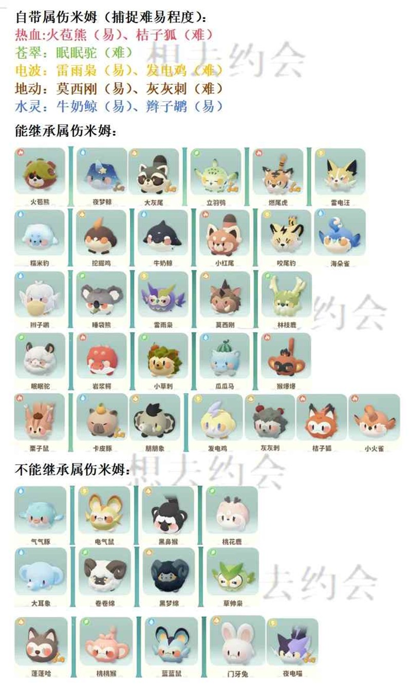 卷卷绵:三金夜电喵+桔子狐;三金黑鼻猴+小火雀;三金黑梦绵+蓬蓬哈